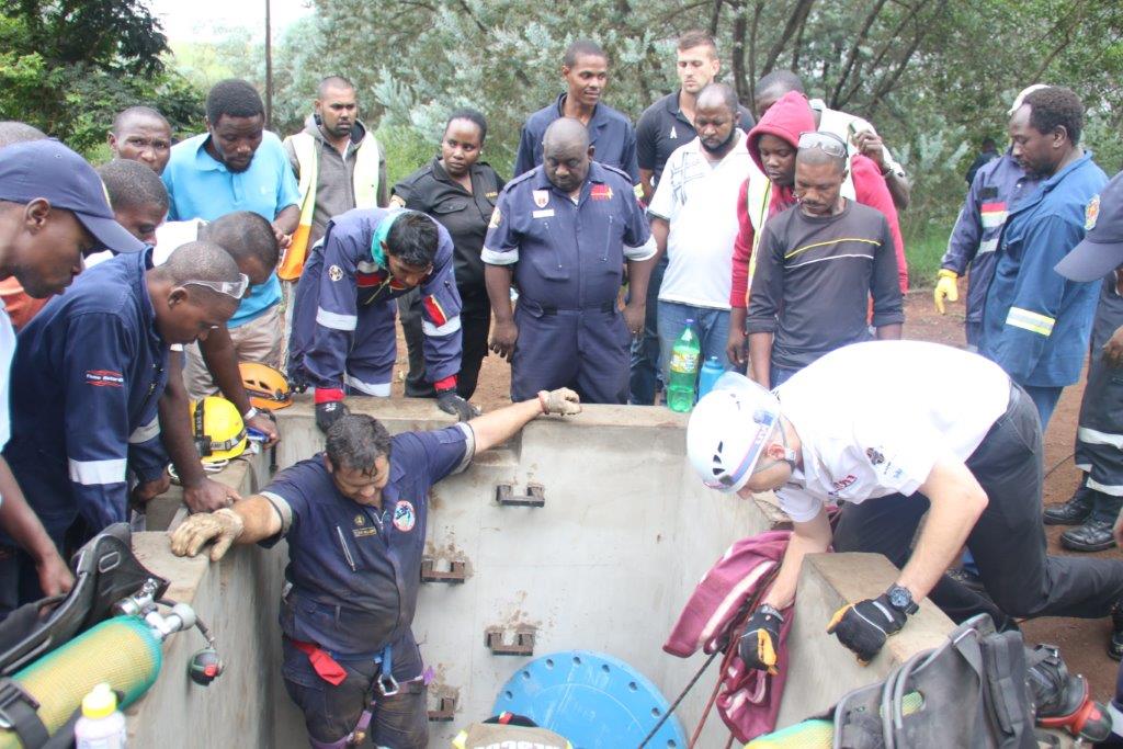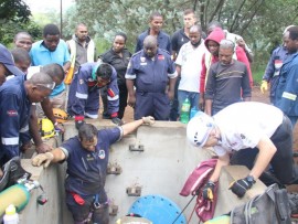 Emergency officials struggle to retrieve bodies from a pipeline in eShowe