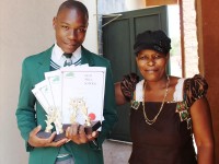 Grade 11 achiever William Ncube shows off his subject awards for best performance overall in maths literacy, geography, tourism and dramatic arts. With him is proud mom Promise Ncube