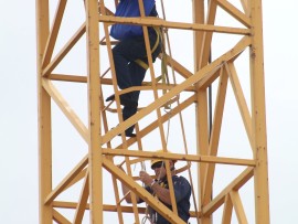 He had climbed up the crane on Sunday and was barricaded in the tower six floors up before eventually being talked down by negotiators after approximately one hour.