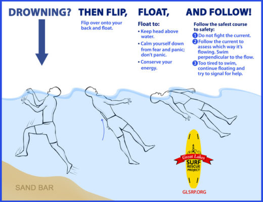 Simply stay afloat by treading water (moving your arms and legs in circular movements). Don’t try to swim against the current as it will only cause you exhaustion. Let the current sweep you out to sea but at your first opportunity swim parallel to the beach front until you are free of the rip current and then use the incoming waves to get back to shore.