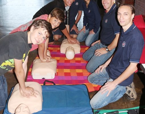 Meditrax gave demonstrations of basic CPR at the open day (from left) David Schouten, Adam Brading, Benjamin Schouten, Dorian Robertson, Nazreen Abrahams, paramedic Richard Schouten and Stuart Kleinsnakenberg