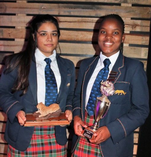 Hasina Joosub (left) was awarded the Cooper Trophy for creative writing , top public speaker, top English achiever and academic excellence awards, while another top public speaker, Thandolwethu Ntshangase, was awarded the English Olympiad trophy and named top achiever in geography. She was also RBM’s top environmental scientist and received the RP Scott Trophy for outstanding academic achievement