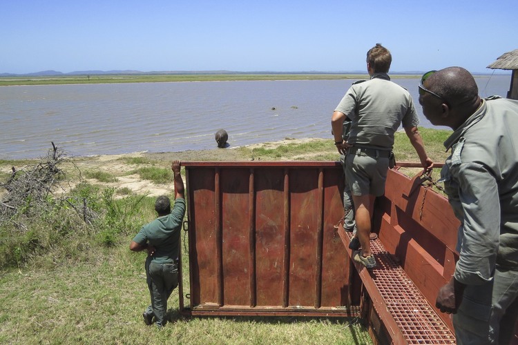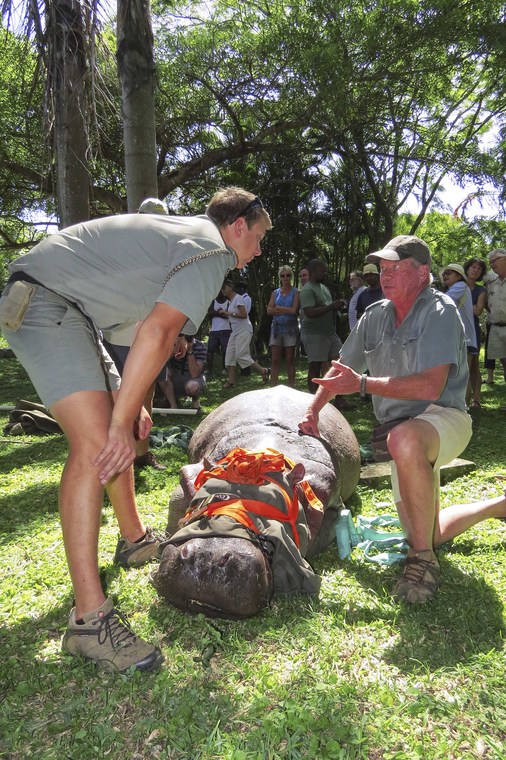 Ezemvelo KZN Wildlife’s Dr Rowan Leeming and Dr Dave Cooper oversaw the darting and relocation of the hippo
