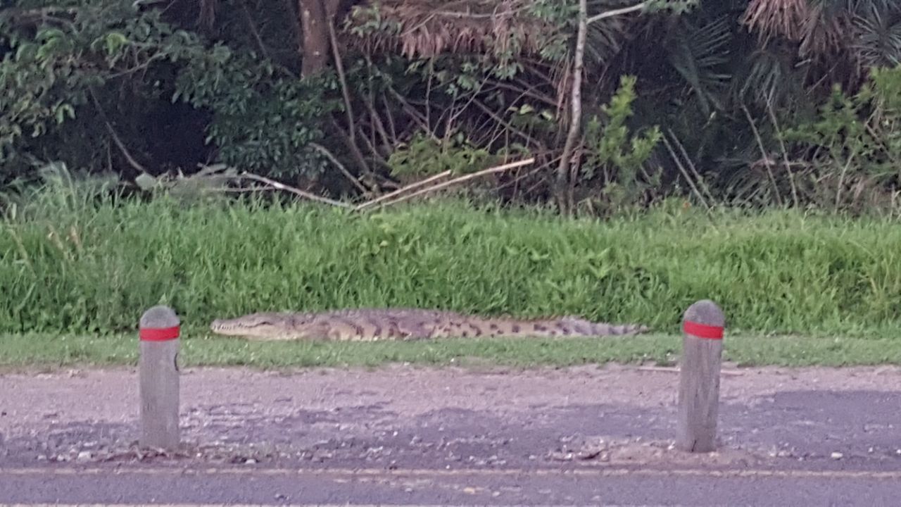 The 2.5m croc was on the greenbelt area in between the two carriageways in the vicinity of the turn-off to the steel bridge.