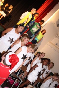 The children, and some parents from Felixton College's junior school on stage in their nativity play with a twist.