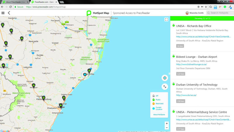 You can also visit a Hotspot to get free access to PressReader. Your closest Hotspot is at the University of Zululand.