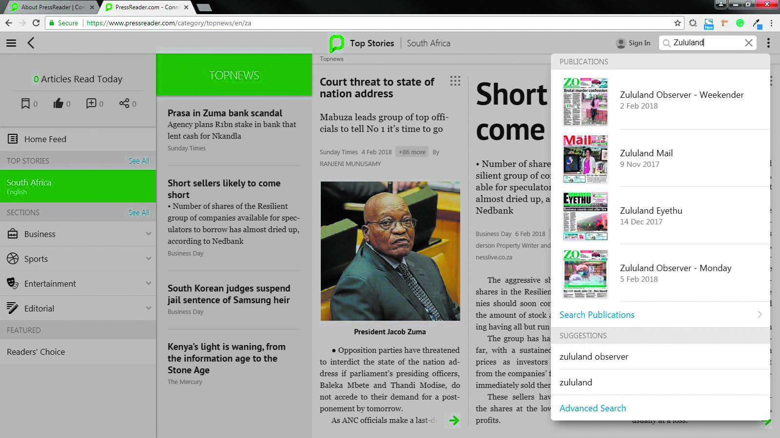 All the newspapers in the ZO stable are now available on PressReader