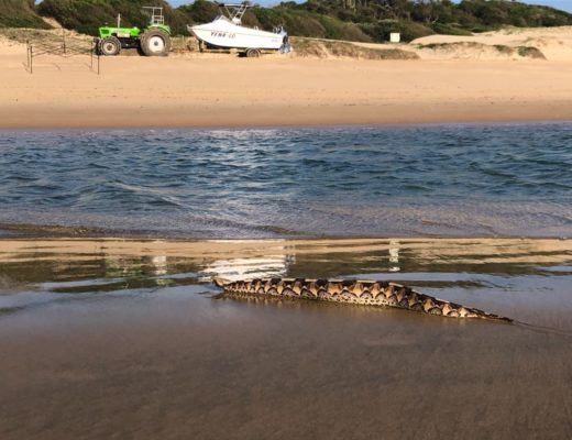 WATCH: Massive Gaboon viper tagged and released at Maphelane beach