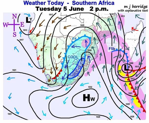 Volgens StormreportSA se Facebook-blad, is daar ‘n sterk noordwaartse beweging van koue lug langs die ooskus, wat mag lei tot verdere stormweer vir die volgende paar dae.