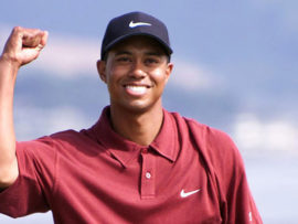 2000 In the PGA Championship, Tiger Woods becomes first since Ben Hogan in 1953 to win three majors in a calendar year (PHOTO MIKE FIALA/AFP/Getty Images)