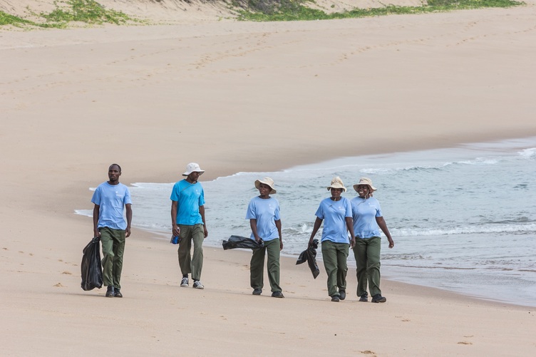 The Coast Care team collecting plastic rubbish on the beach at Sodwana Bay