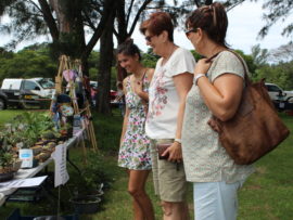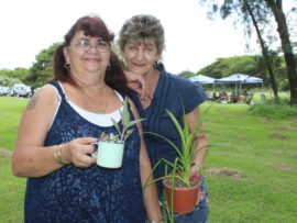 Janine Erasmus, Alida Zanderburg and Antoinet de Wet shop for pot plants at the Steel Bridge Market