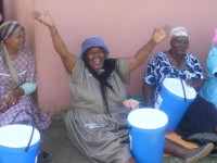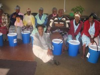 The gogos at Dlangubo Crèche with their much needed buckets which will keep them and their families going over the festive season