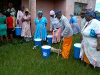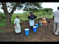 Residents of Ward 7, Ntambanana with their buckets which were given to them in passing by Linda and her helpers