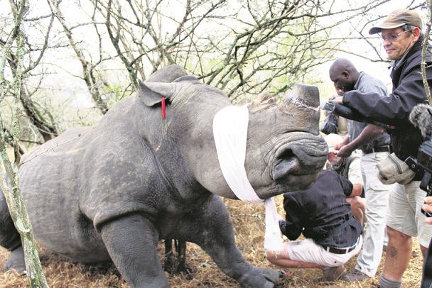 Rhinos dehorned for protection