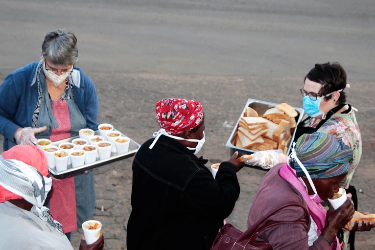 After cooking 1 250 litres of soup on Sunday, stations were set up at 6am, with distribution taking place from 7am by 32 servers at five venues at pension payout points throughout the town.