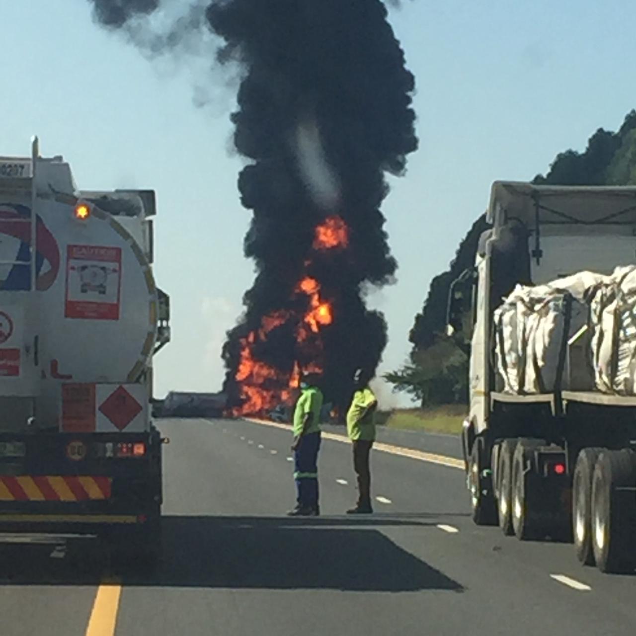 WATCH: Petrol tanker in flames on N2