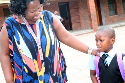 Home/Zululand Grade 1s/Teacher Gloria Mabizela consoles young Bayanda Mngoma Teacher Gloria Mabizela consoles young Bayanda Mngoma