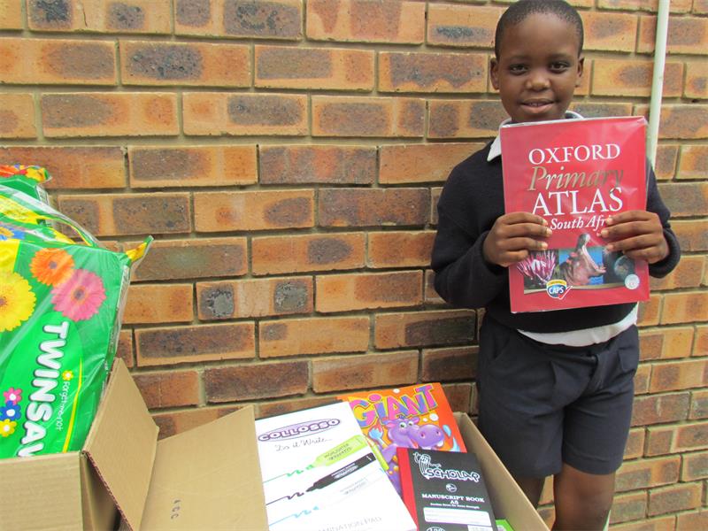Included in the package were stationery and books for his younger brother, Njabulo, who attends Nordale Pre-Primary School, as well as some household goods for the rest of their family.