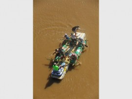 Paddlers meander down to the river mouth in Tugela Raft Race