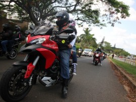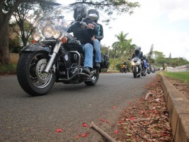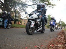 Bikers, young and old, arrive to hand in their toys for DICE at the Zululand Observer.
