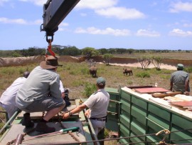 ‘While the current white rhino population in the Mkuze section of iSimangaliso is below the ecological carrying capacity and artificial water points are flowing well, the severity of the current drought coupled with…high temperatures, has resulted in food shortages and severe nutritional stress for some of the animals. It was determined that the rhino in poor condition should be relocated as an emergency measure,’ said iSimangaliso CEO Andrew Zaloumis.