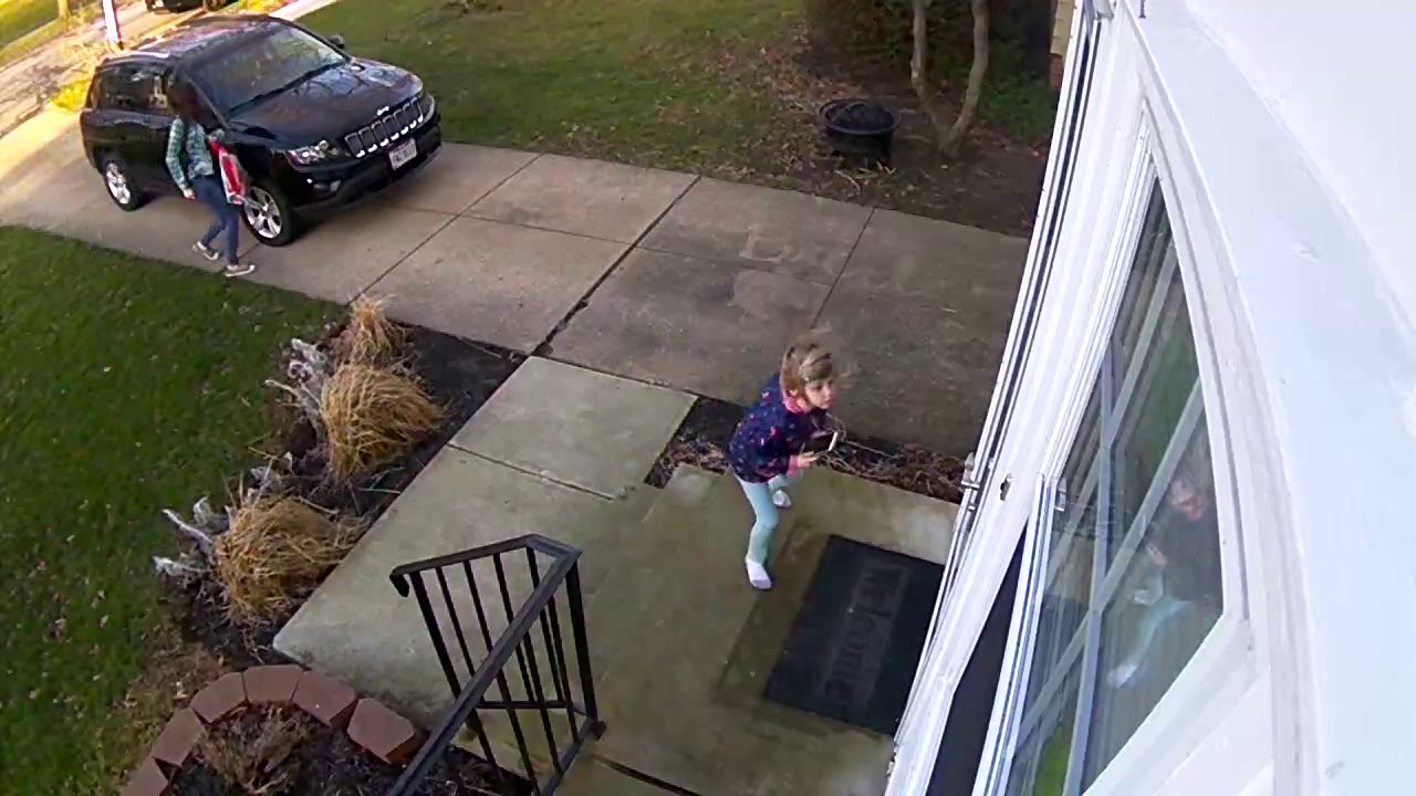 Little girl hangs on door after being swept up by wind gust