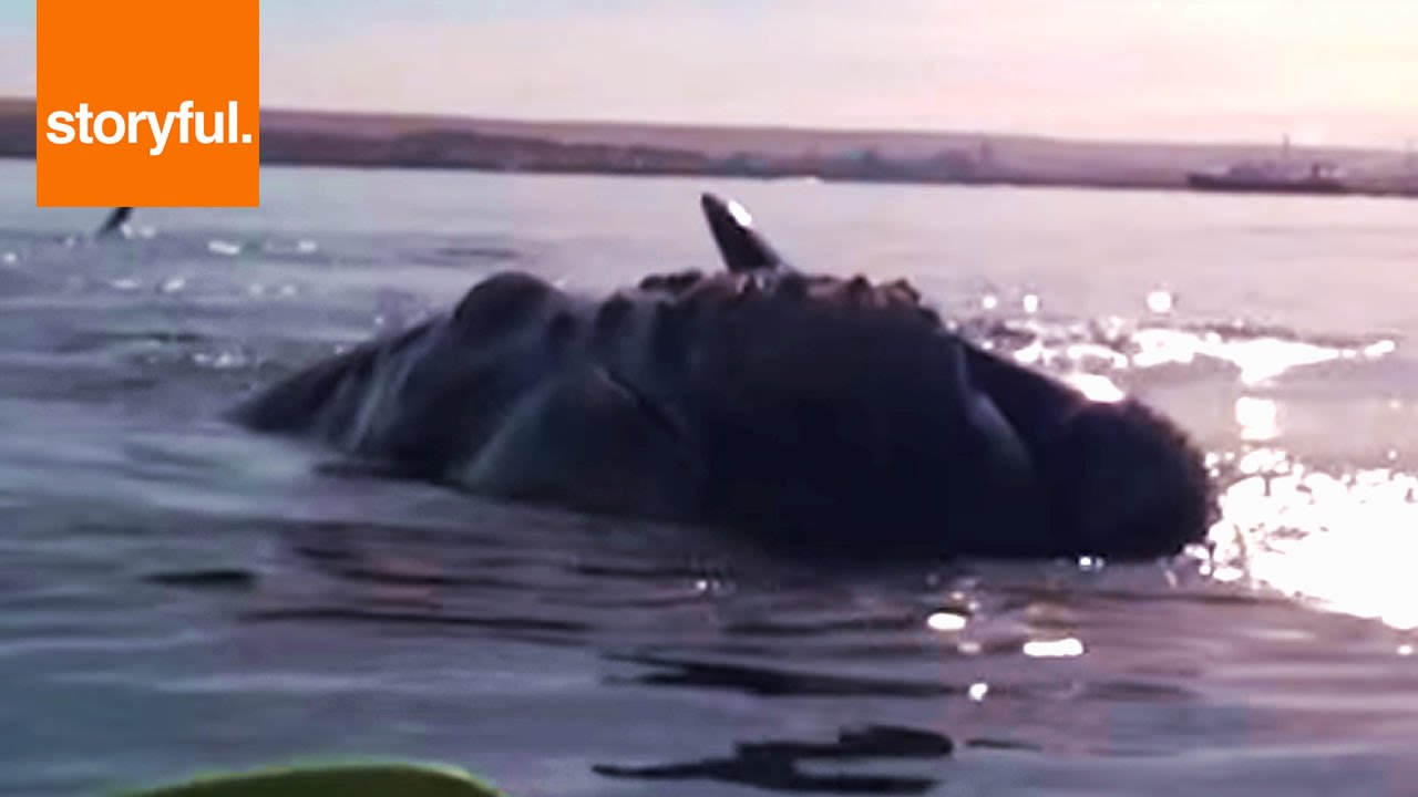 Two kayakers paused to take a closer look at some whales off the coast of Argentina, but got a shocking…