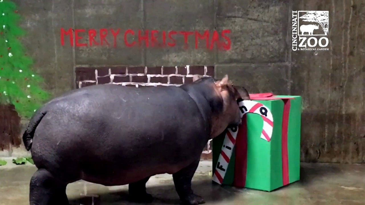 Baby hippo Fiona is approaching her first birthday, but she celebrates her first Christmas as only Fiona can.