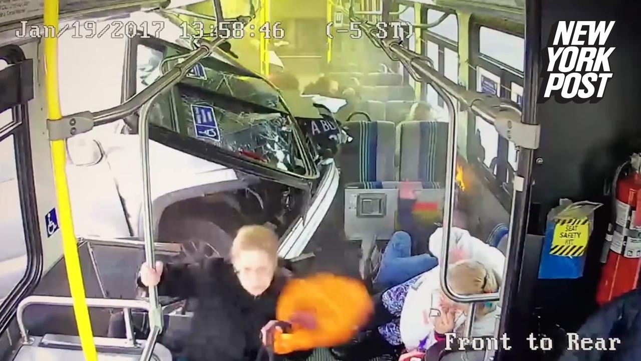 Woman warns passengers seconds before truck smashes through bus