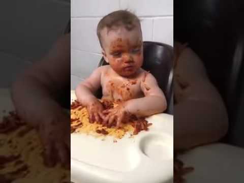 Just a baby trying to stay awake so he can eat his spaghetti
