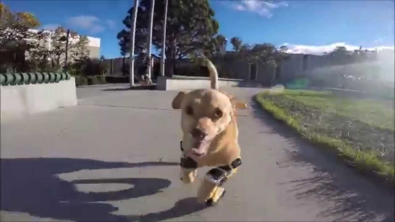 Adorable video of disabled dog Daisy learning to run in prosthetic paws.